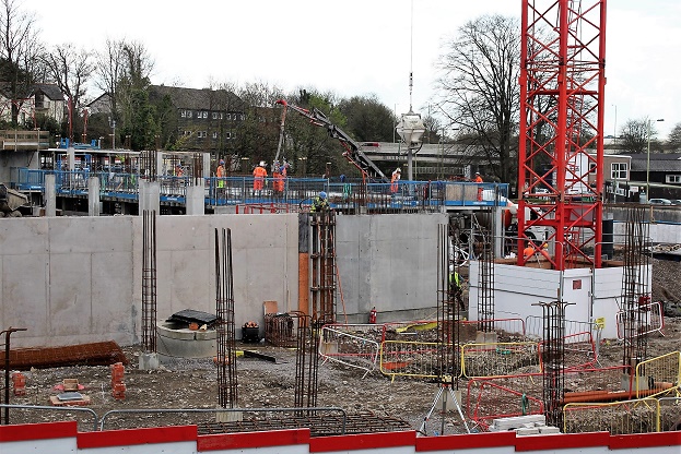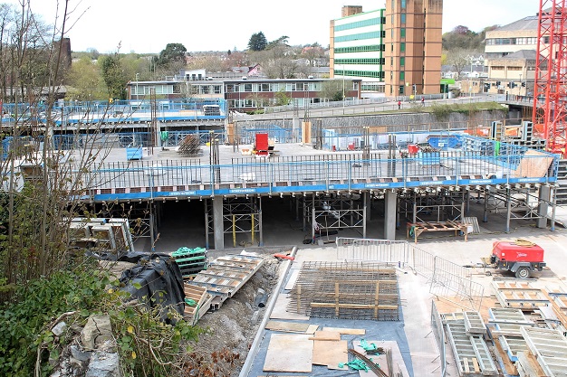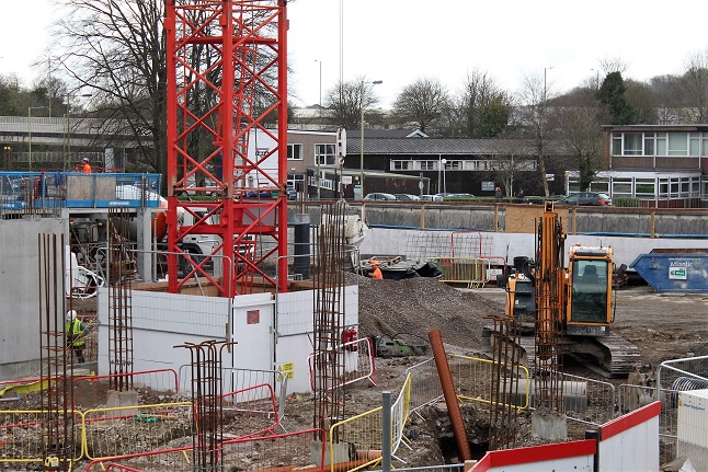 The old car park being crushed for the foundations of the New car park. © Alan Bateman